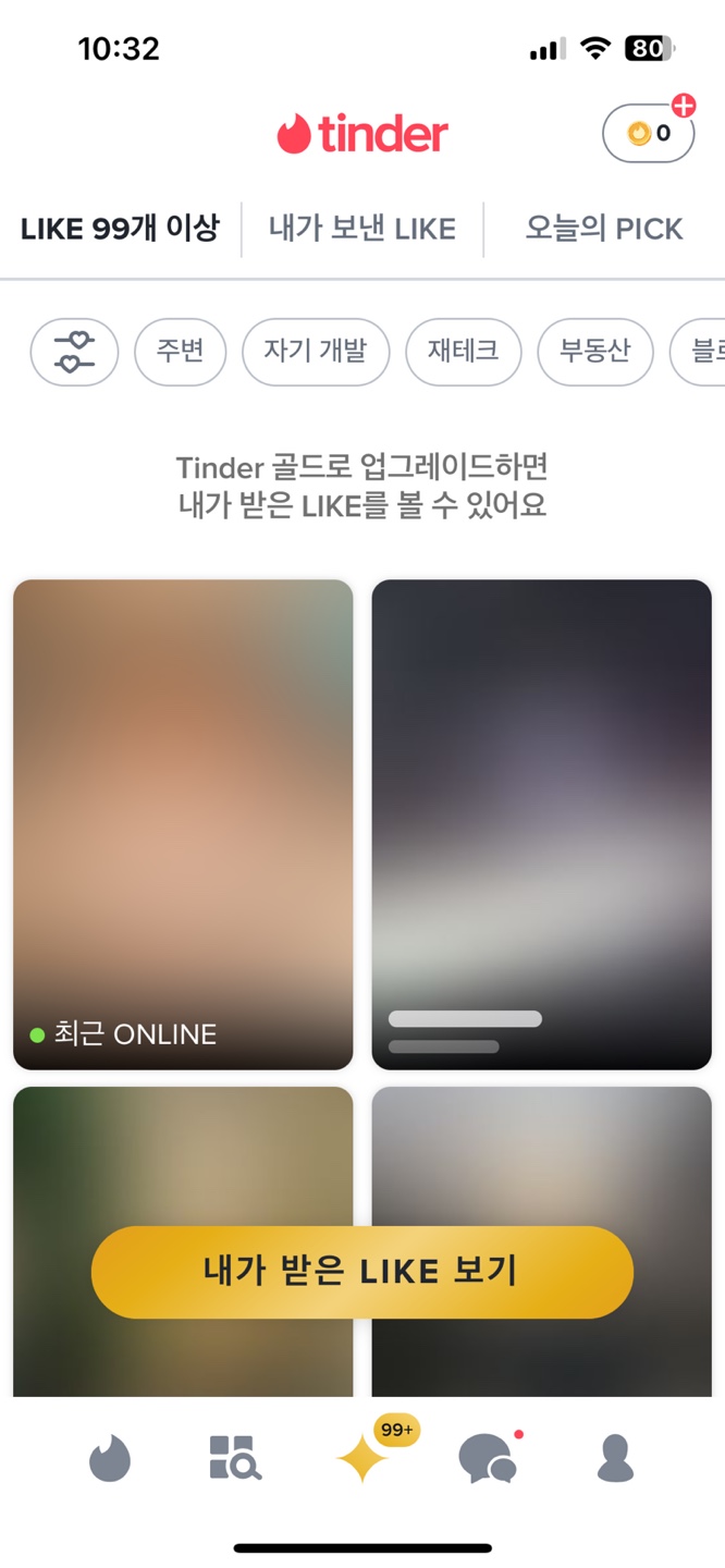 저를 like하신분들을 볼 수 있지만 유료입니다 저는 틴더에 돈을 쓰진 않았지만 궁금하시면 구매하시는 것도 나쁜거 같지는 않아요 아 그리고 틴더 설정 남자로 하고 여자분