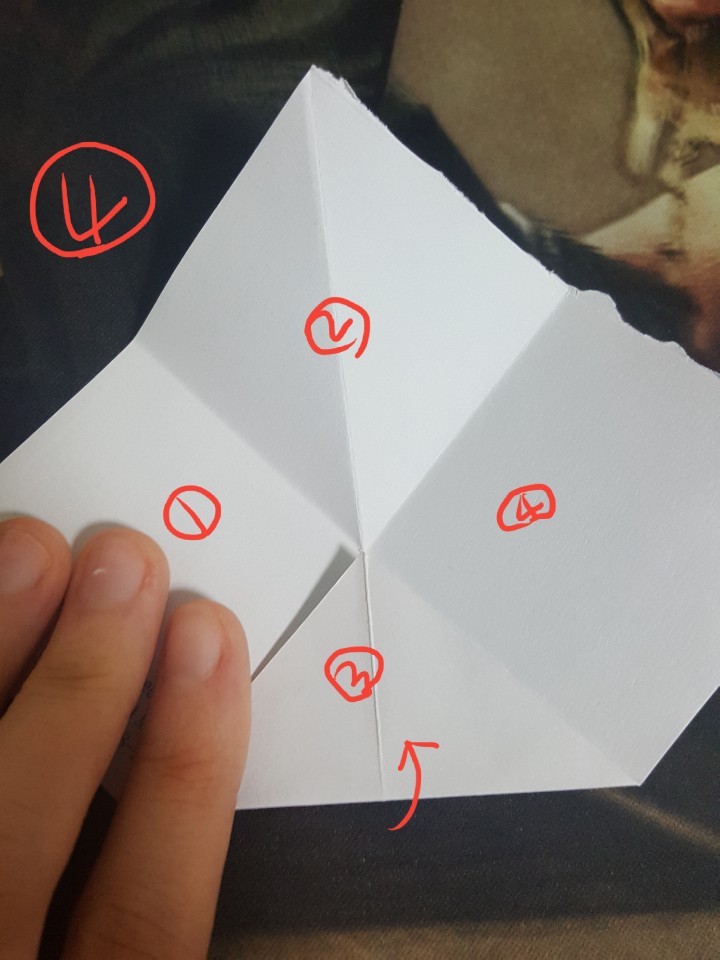 그리고 혹시 동서남북 접을 때 접기 아시나요? 학접을때 그 접기? 그 접기처럼 하시면 돼요
