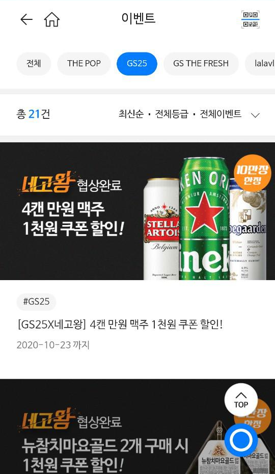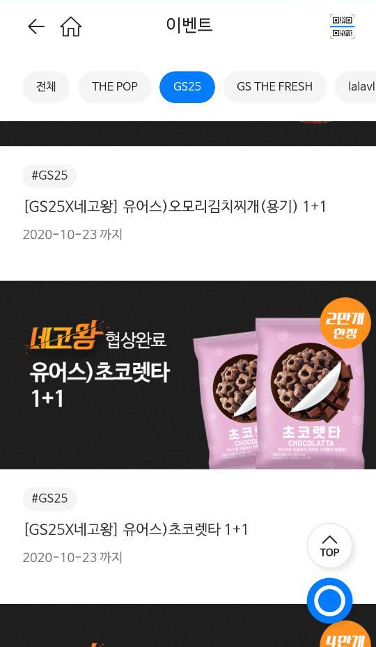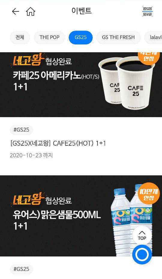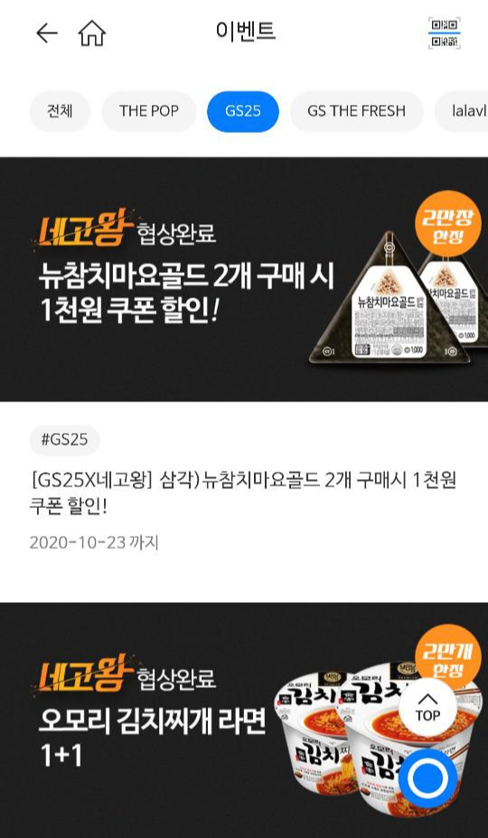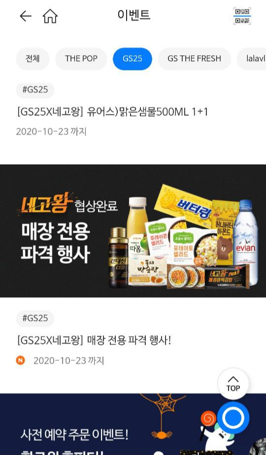 맨 위에 보시면 GS25, THE POP, GS THE FRESH, 등이 보이시요?