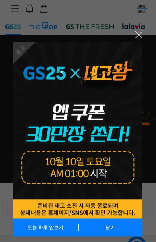 거기서 GS25를 클릭하시면 들어가자마자 윗글이 떠요
